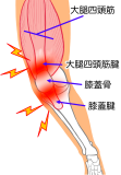 太ももの前の筋肉(大腿四頭筋)の緊張をラジオ波で弛緩させ、柔軟性を高めて早期で痛みの軽減を促す
