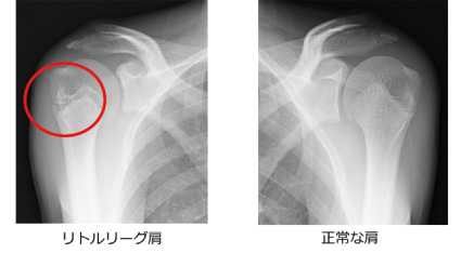 「リトルリーガーショルダー」とは、成長期の子どもに見られる肩の成長線の障害です。